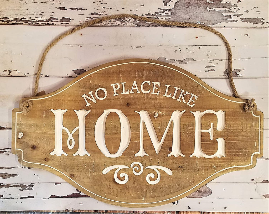No Place Like Home Vintage Hanging Wood Look Wall Sign