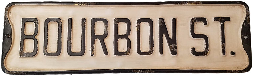 These vintage street signs will add a touch of nostalgia to your home decor.Made of metal and painted distressed white with black trim and spots of distressed features.
