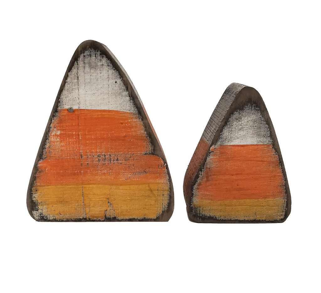 Set of 2 primitive handmade candy corn wood figurines. These are made by hand and painted/stained for a primitive or vintage appearance