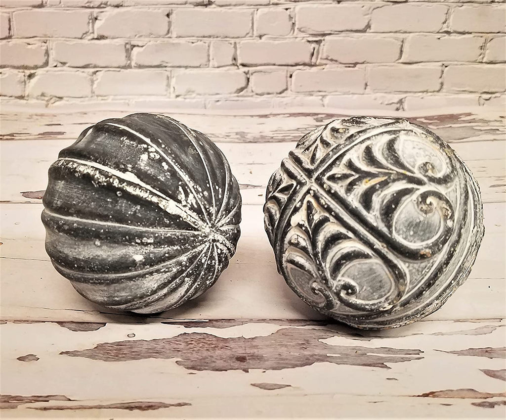 Set of 2 Charcoal Decorative Balls with Textured Whitewashed Accents
