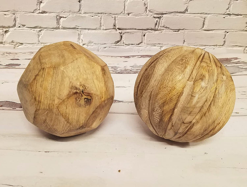 Set of 2 wood carved balls. You will receive one honeycomb or hexagonal ball and one swirl ball. Due to the nature of these items they are unique. Color may vary by monitor. Wood may have color variations and markings.