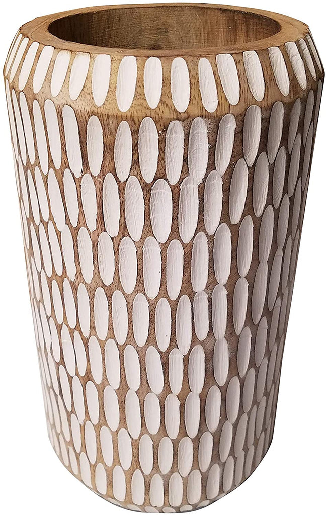 Modern Rustic Hand Carved Boho Wood Vase Planter Home Kitchen Bedroom Decor
