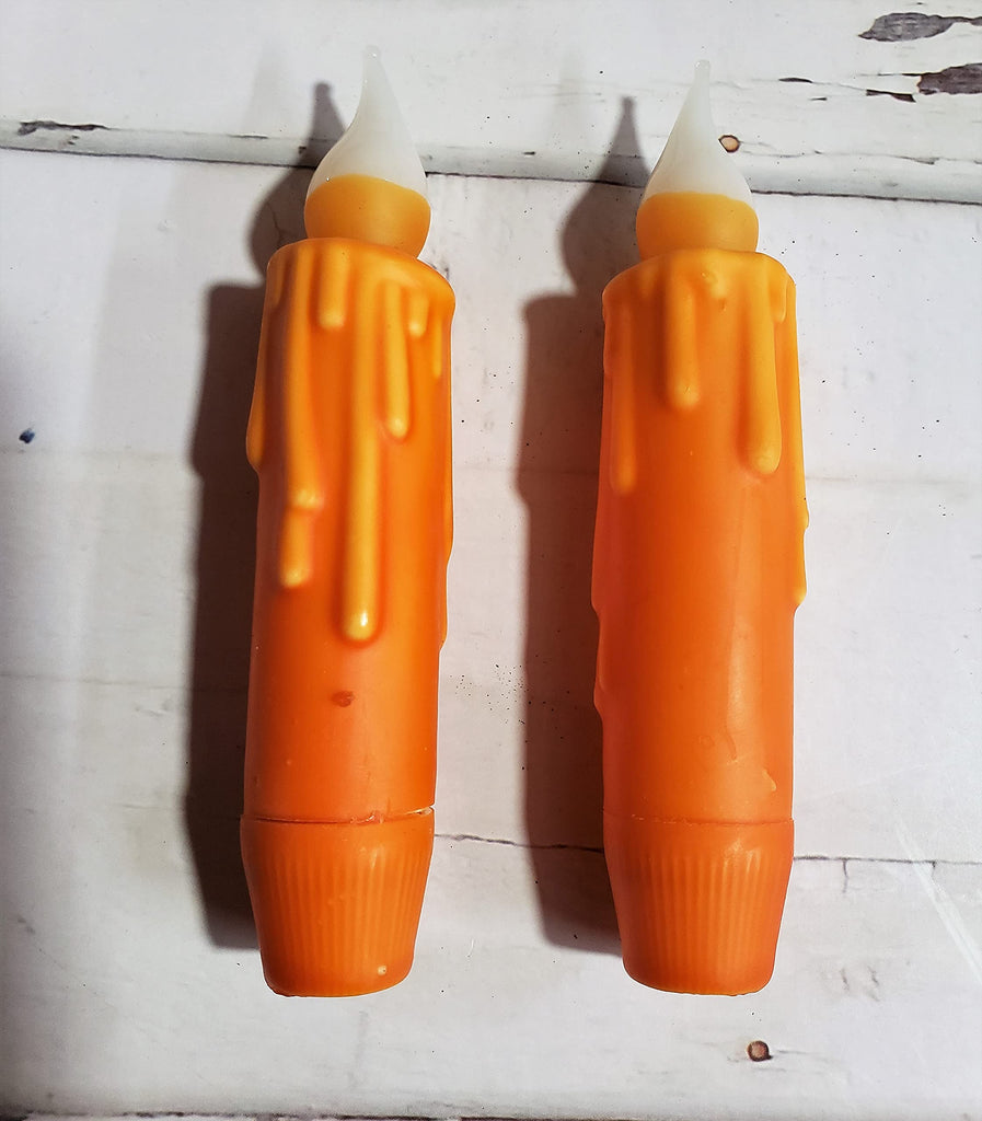 Set of two hand-dipped wax timer tapered candles. They are battery operated LED flameless taper candles. Great decorative accent without the flame.