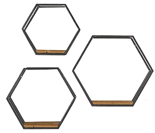 PG Modern Rustic Honeycomb Shelves Set of 3 Metal Wood Wall Decor