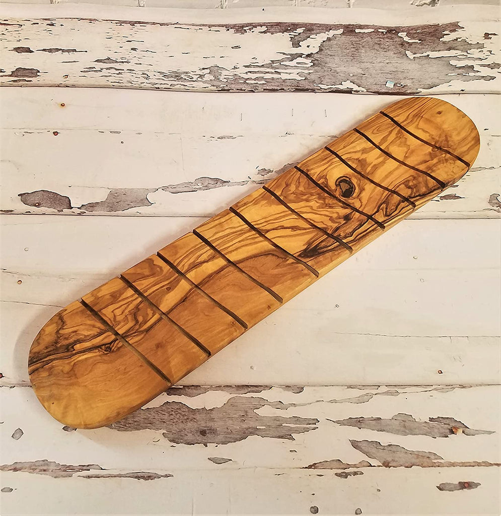 Olive wood bread slicing board and serving tray. Each will have slightly different shades and vary in appearance. Perfect size for baquette.