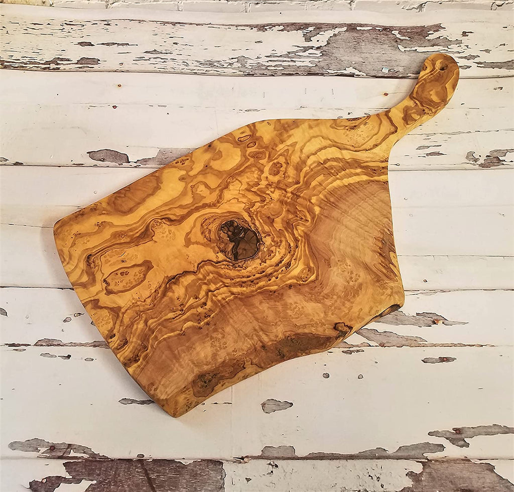 Rustic Olive Wood Cutting Board Serving Tray with Handle