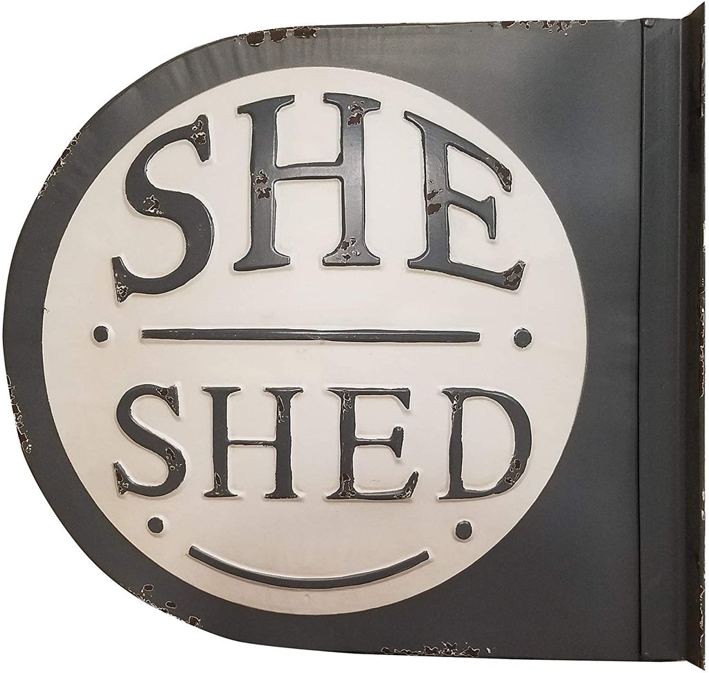 PD Home She Shed Two Sided Metal Wall Mount Decorative Sign Gray