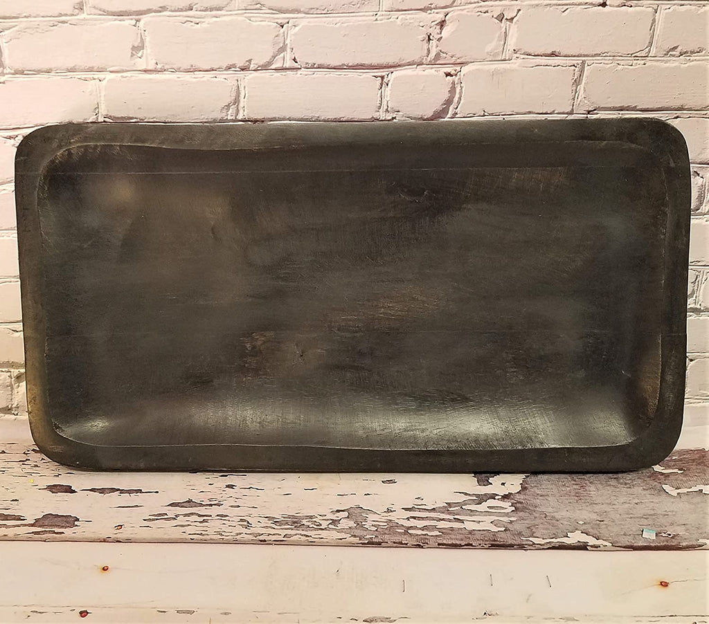 Rustic Black Wash Mango Wood Tray Decorative Tabletop Decor